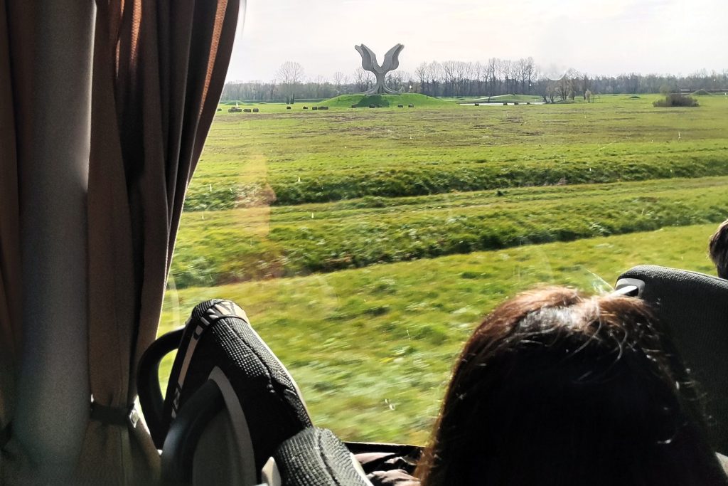 Na dogovoreno mjesto stiže autobus na vrijeme, zbilja je udoban, mjesta ima dovoljno pa svi sjedimo na dvije stolice. Prebrojimo se, provjerimo dokumente krećemo. Šutljivi danas svi moji suputnici, ne pjeva se, što nije baš uobičajeno za ovakvu ekipu. Putujemo autoputom do Novske, te na Jasenovac, prema Prijedoru do Sanskog Mosta.