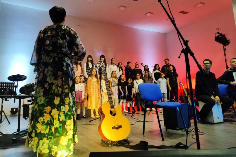 Tonska proba, u nevelikoj dvorani s kvalitetnom opremom i puno mikrofona, pa još i svjetlosnim efektima, brzo je odrađena. Slijedi preoblačenje u zborsku odjeću i nastup.